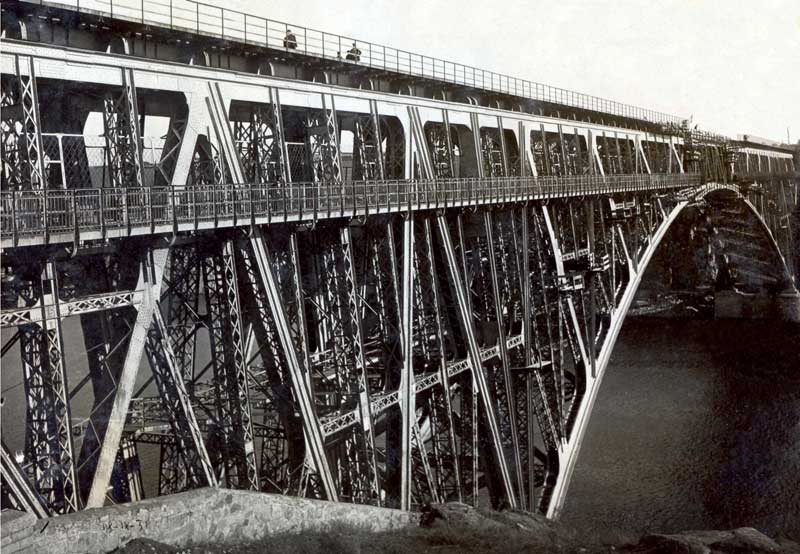 Через реку была переброшена одна арка. Расстояние между опорами арки было 190 м. Мост был двухярусный. По верхнему ярусу была проложена двухколейная железнодорожная магистраль.